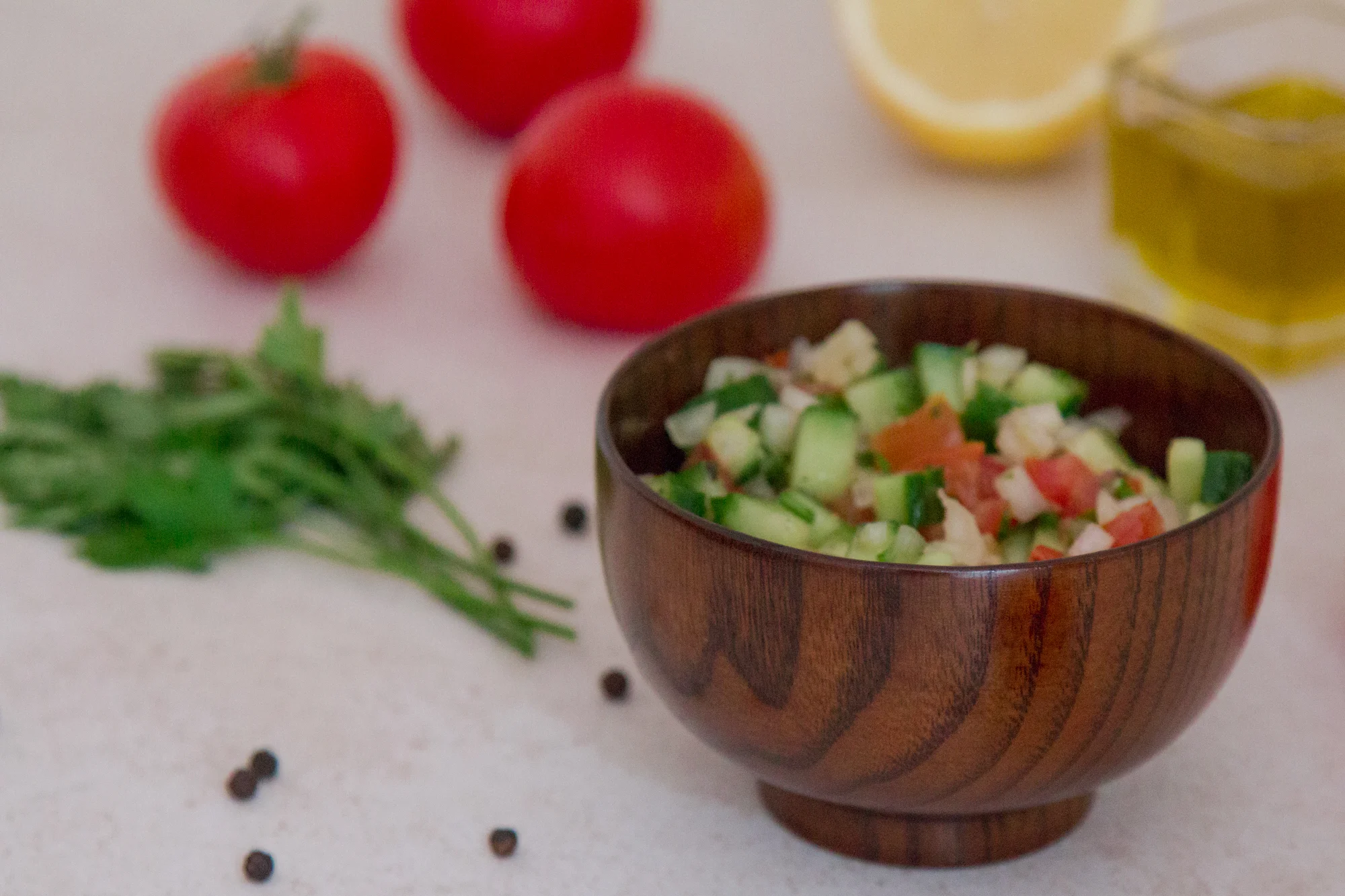 The simplicity of the ingredients allows the salad to go with many dishes. In Morocco, it is usually served as a side salad next to tagines or grilled foods.